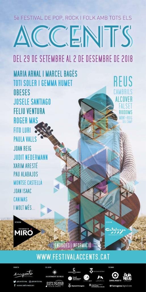 Cartell, fulletó i adaptacions per a la cinquena edició del Cicle de pop, rock i folk ACCENTS, amb seu a Reus, Cambrils, Riudoms, Alcover, Falset i Mont-roig del Camp.