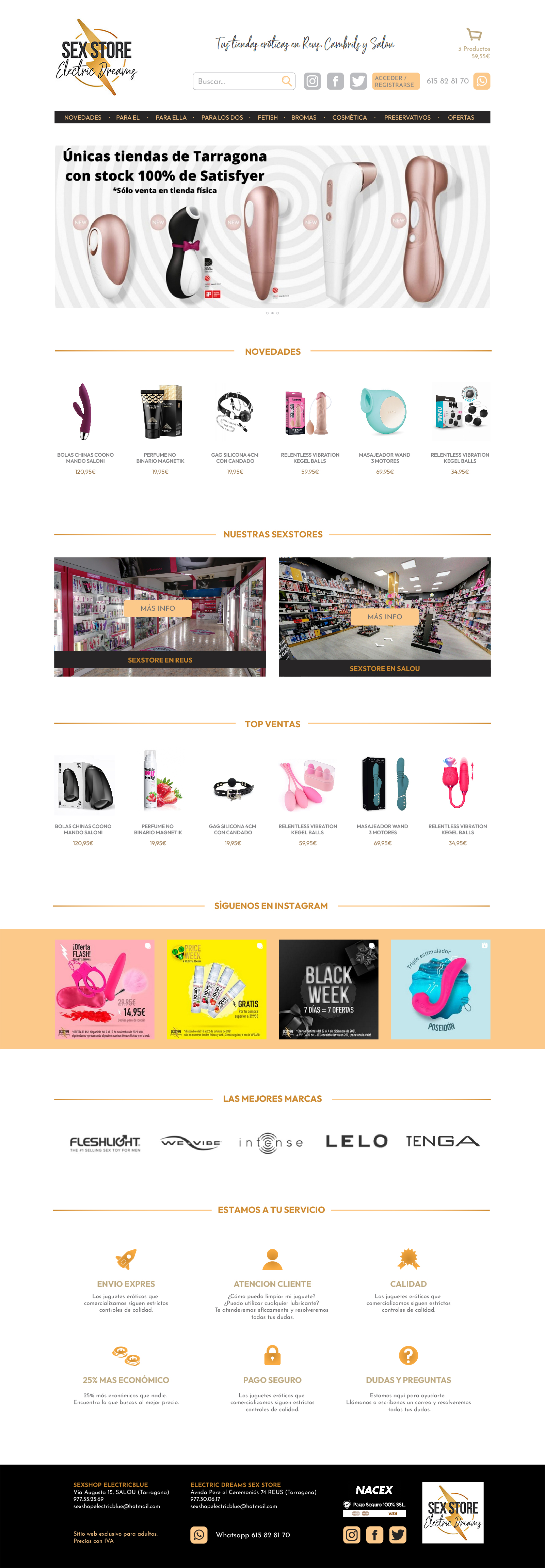 Disseny visual del web www.electricbluesexshop.com per a Sex Store Electric Dreams.
