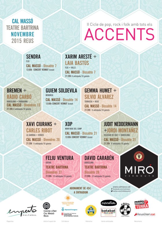 Cartell, entrades, pancarta i banners per a ACCENTS, el Cicle de pop, rock i folk fet al Centre d’Art Cal … Més